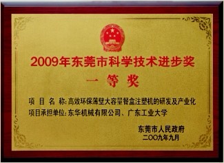 1993年東華公司在國內首先突破特大型注塑機的設計和工藝技術,成功設計制造出國內首臺2500噸合模力的TTI-2500B特大型注塑機,填補了我國大型注塑機的空白,獲得了國務院頒發的“中華之最”榮譽證書;同年在國內塑機行業首家獲得高新技術企業認定證書和ISO9001質量體系認證證書; 2001年研制出國內第一臺環保節能高效的電動注塑機;2004年,被廣東省科技廳評為優秀高新技術企業。